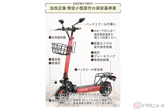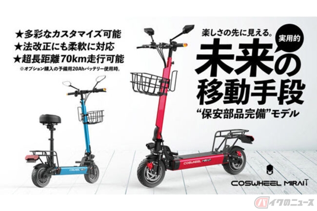 新型電動キックボード「COSWHEEL MIRAI T」発売 「ほぼ自転車扱い」の「特定小型原付自転車」へも対応