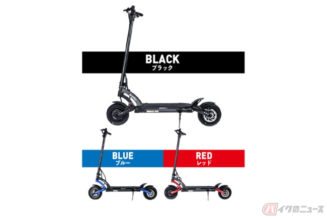 カラーは、ブルー、ブラック、レッドの3色、オフロードタイヤを装備したアウトドアモデルも同時発売となるMANTIS10の価格(消費税10%込)は、11万100円からです。