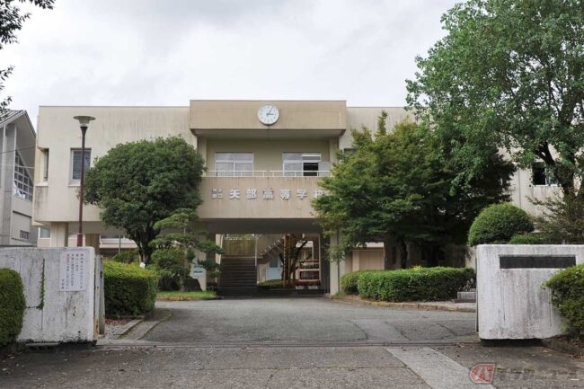 矢部高校の二輪車競技部は、地元に支えられた“異色”の部活です。食農科学科、林業科学科、普通科の3学科。自動車科など工業系の学科はありませんから、自動車の構造を学ぶ傍らクラブがあるわけではなく、その名の通り純粋に安全運転でモータースポーツを追求するクラブです。阿蘇南外輪山の山麓に位置する学校には、多くの生徒が原付スクーターで通学する環境。米村教諭も同校の卒業生で20kmの道のりをバイク通学していました。
