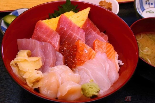 写真付きのメニューを見ると、「大トロ炙り丼」もかなり美味しそうです。Kさんと世間話をしていると「アジフライ定食」と「特選海鮮丼」がテーブルに運ばれてきました。