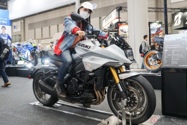 また、同じブースで展示されていた「KATANA」にも跨ってみました。スズキはほとんど試乗したことがなかったので、直接目で見るのも手で触れるのもとても新鮮でした。