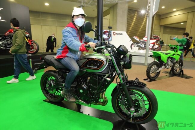 続いて、カワサキブースへ。入口では「アクション映画のオープニング?」ともいえるような迫力あるBGMとともに飾られているのは「Ninja H2 SX SE」。以前、私が出演させていただいたバイクをテーマにしたドラマ『夜、駆ける。あの一杯まで。』にて、カワサキの「Ninja H2 SX SE+」が登場していました。