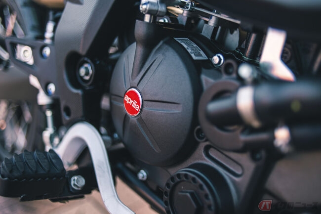 最高出力11kW(15HP)/10,000rpm、最大トルク11.2Nm/8,000rpmを発揮する排気量124.2cc・4ストローク水冷単気筒DOHC4バルブエンジンを搭載するRX125では、アプリリアがオフロードレースで得たノウハウを投影したシャーシを採用。