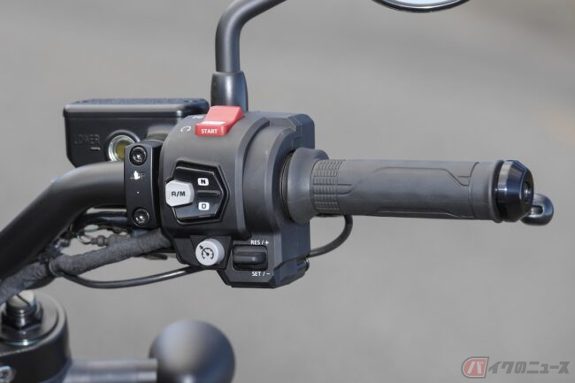 レブル1100に跨ってエンジンをかける前に、ちゃんとニュートラルに入っているかしっかりと確認。バイクを起こして、まっすぐ足もキープして、次なるミッションはスタート時の、スロットルをスムーズに開けること。