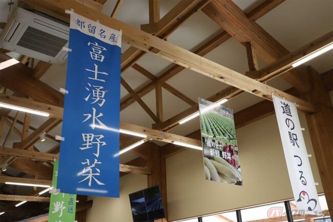 「道の駅つる」は、その名の通り山梨県都留市にあります。場所は、国道20号を大月から139号へ入り、都留方面へ数km走った右手です。首都圏から富士山を目指す下道好きのライダーにはお馴染みのルートですね。