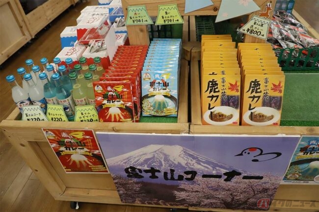 まず目を引いたのは、富士の湧水を使って育てたという野菜です。ここ都留は富士山を起源とする湧水が豊富で、市内の「十日市場・夏狩湧水群」は環境省が選定した「平成の名水100選」にも選ばれているとか。バイクなので大きな野菜は持って帰りにくいですが、ミネラル分の多い湧水で育てた野菜はとても美味しそうです。この他にも、地場産の玉子を使ったプリンなど、気になる商品が並んでいました。