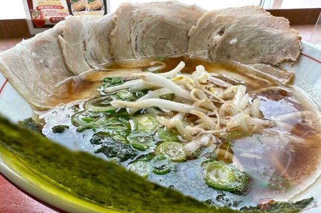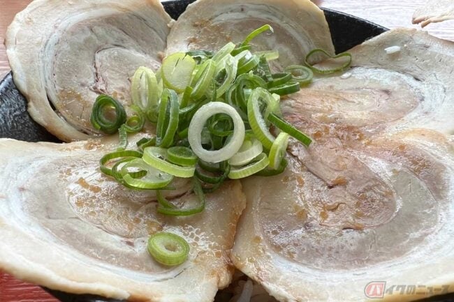 オーダーしたのは「播州ラーメンミニチャーシュー丼セット」(880円)です。出来上がりを見て驚いたのは、チャーシューが想像以上に大量だったこと。丼もラーメンも、チャーシューが器からはみ出ています。しかし薄くスライスされたチャーシューは、多過ぎて食べられなくなる心配は無用でした。