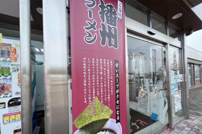 兵庫県北播磨地域には「甘いスープ」が特徴のご当地ラーメンがあるそうです。ツーリング中に中国自動車道「社(やしろ)PA」(下り)に立ち寄ったところ、その味を体験することができました。