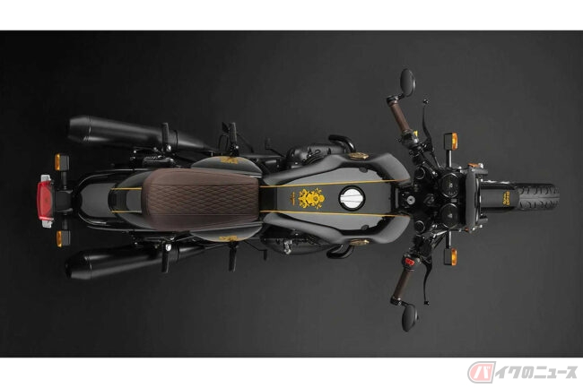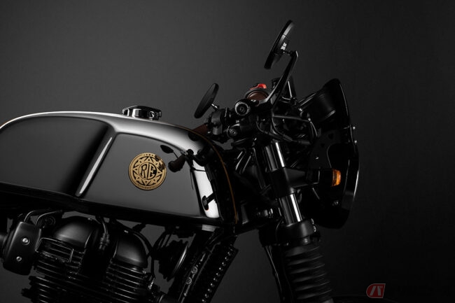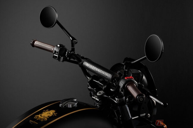 また、ブラッククロームタンクをより引き立たせるために、エンジン、サイレンサーなどのコンポーネントだけでなく、フライスクリーン、エンジンガード、ヒールガード、バーエンドミラーなどの純正モーターサイクルアクセサリーもすべてブラックで統一。
