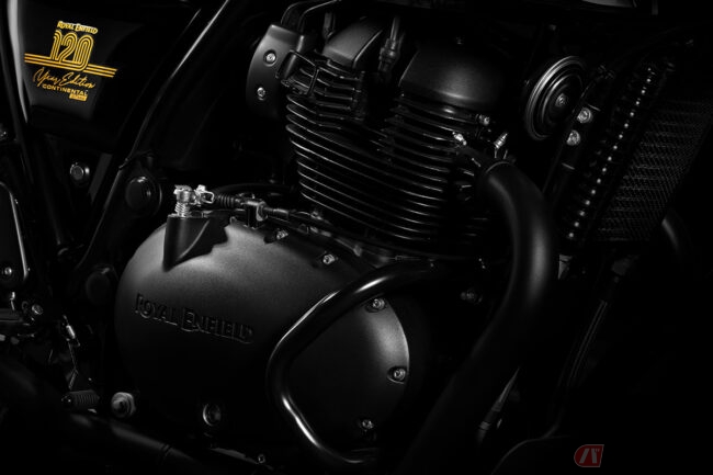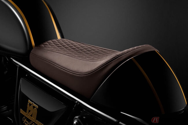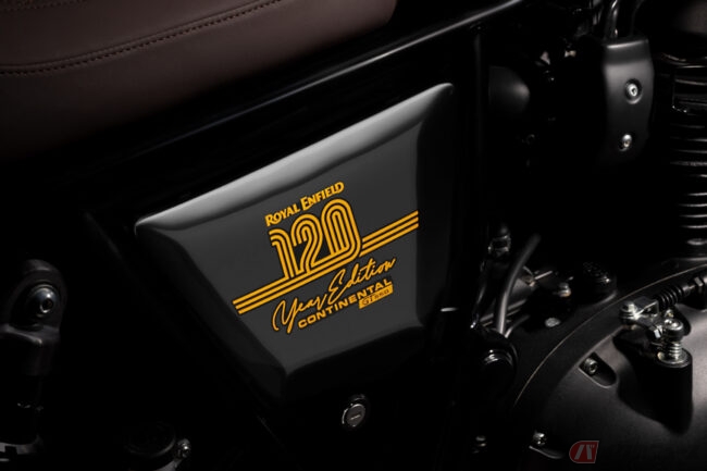 タンクの上面には、特別モデルの1台であることを示すシリアルナンバーが刻印され、サイドパネルにはロイヤルエンフィールドの歩んできた120年を記念した特別なデカールも施されています。