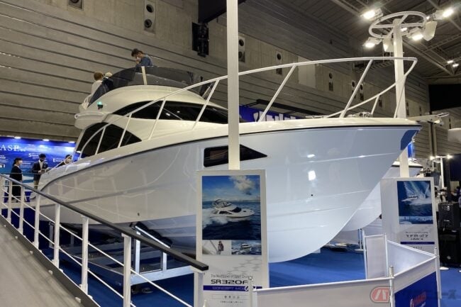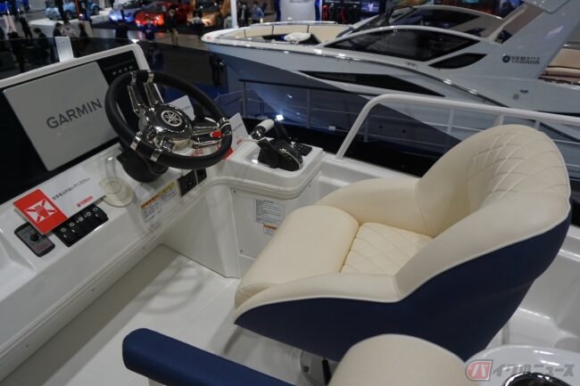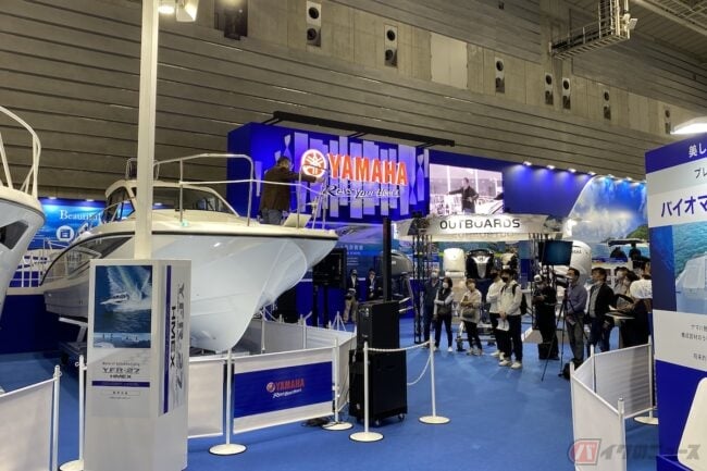 そして、今度はこちらのメーカーさんへ。そう、ヤマハさん!バイクは何度も試乗させていただいていますが、船を見に来るのは初めてです。広報の小野寺廉さんに展示されている2隻の船についてお話を伺ってみました!