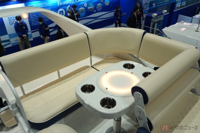 釣り用の船とまた違う点があり、釣り船は釣りが船上のどのポイントでもできるようなスペースの釣り座があります。そのスペースがなく、一方で船内でくつろげるスペースが広くなっていました。「クルージングしながらまったりする」がコンセプトになっているそうです。まるで「動くリビング」。