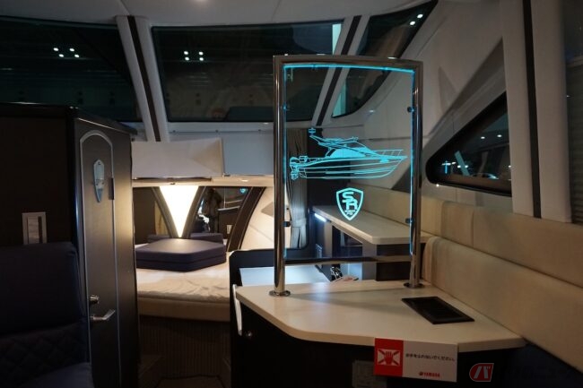 今回、ボートの展示会に初めてきたのですが、正直狭くてそんなにくつろげるものではないんじゃないかな、という印象を持っていまいした。でも実際に直接入ってみたらまるでホテルのような雰囲気で、船内でリラックスできる空間になっているとは驚きました。こんなの見たら船に乗りたくなってしまいますよね。