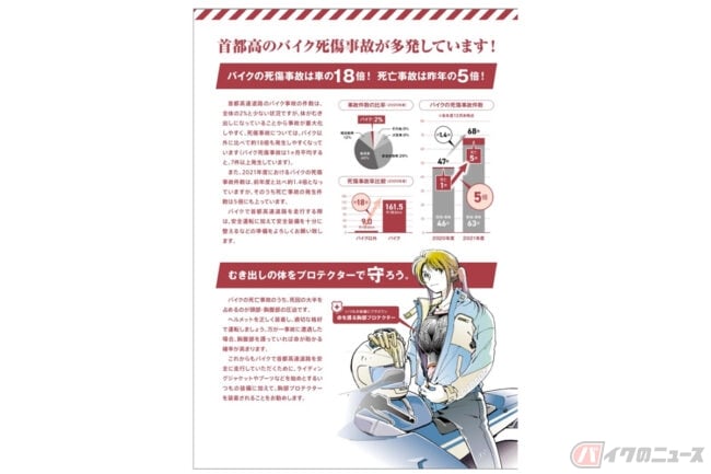 近年、バイクの需要増加に伴いバイク事故が増加傾向にあります。特に、東京都におけるバイク乗車中の交通事故死者は全体の約25.8%(2020年度/前年比+約4.8%・全国平均 約18.5%)を占めていますが、都内の移動経路として重要な役割を占める首都高速道路(以下:首都高)でもバイクの事故が増えているといいます。