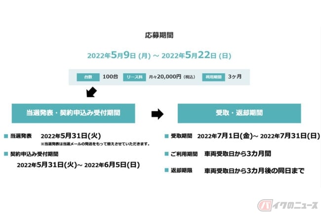6万円で3か月間借りられる電動レンタルバイクと考えると、かなりリーズナブル。個人リースの枠は100台しかなく、申込みは殺到しそうです。