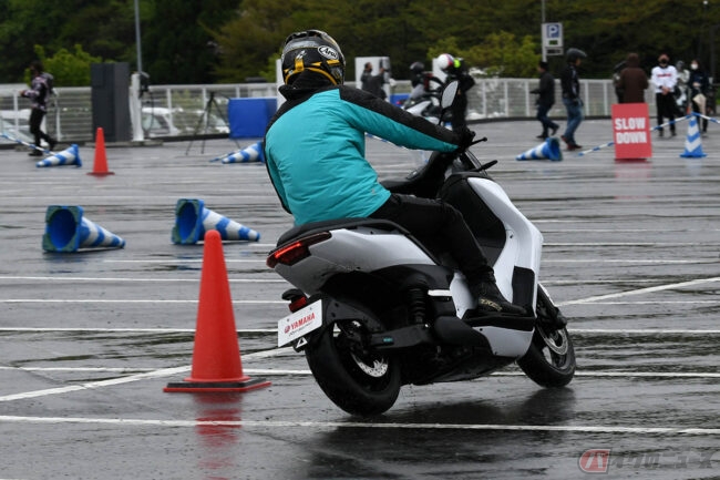 試乗会では同クラスとなる『NMAX』(原付2種125cc)も比較用に用意され、同等あるいはそれ以上の加速性能とヤマハらしい軽快なハンドリングを持つことがわかります。