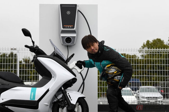 これまでの電動車はいずれも50cc=原付一種モデルで、原付二種クラスは今回の『E01』が初。開発責任者の丸尾卓也さん(ヤマハ発動機PF車両開発統括部CV開発部EM設計G)は「一歩先を行く本格的な動力を備えた」と胸を張ります。