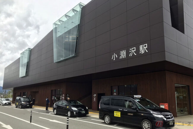 カブなど原付の場合は駅の駐輪場を利用できますが、それより大きいバイクの場合は付近駐輪場に停めた方が無難。駅前に15台が停められる、45分間は無料のパーキングがあるので、クルマの場合はそこを使うと便利です。