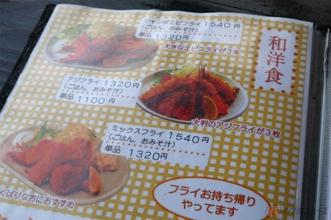 アジフライはもちろん、刺身も新鮮で美味しいものばかりです。海を見ながら食事が出来るというロケーションも含め、たいへん美味しくいただきました。