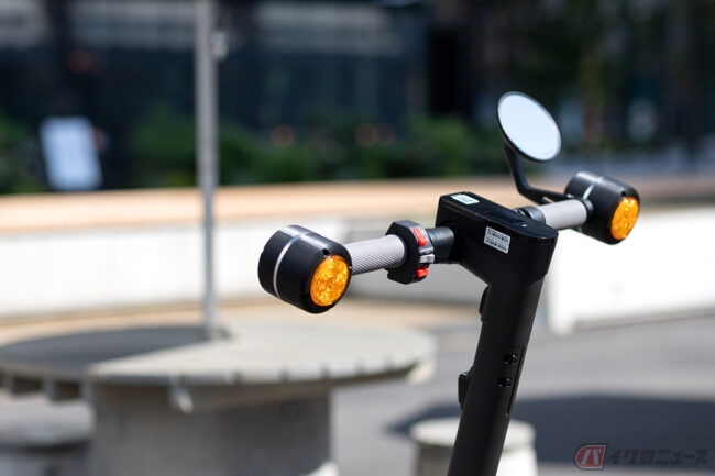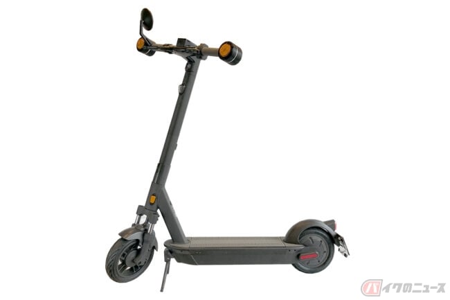 現在行われている電動キックスクーターの公道実証実験を実施することを内容とする産業競争力強化法に基づく新事業活動で求められる基準に準拠したMax Plus公道仕様版では、レトロな方向指示器をハンドルバーエンドに配置し、前後から高い視認性を確保。