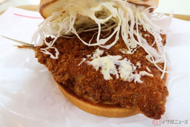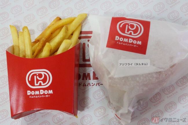 アジと言えばアジフライ! というライダーのために、アジフライとハンバーガーの異色コンボ、ドムドムハンバーガー期間限定の「はみでる!アジフライバーガー」を紹介します。
