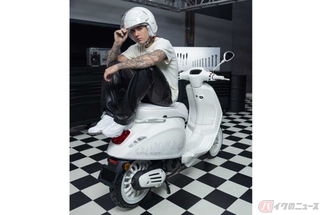 全身真っ白!? ジャスティン・ビーバーとベスパのコラボモデル登場 ベース車両は「スプリント150」