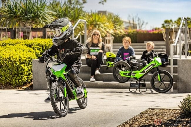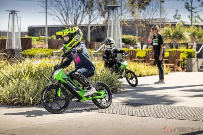 カワサキ製電動バイク「Elektrode」登場 「KX」ブランドの最新モデルは3歳から遊べる!