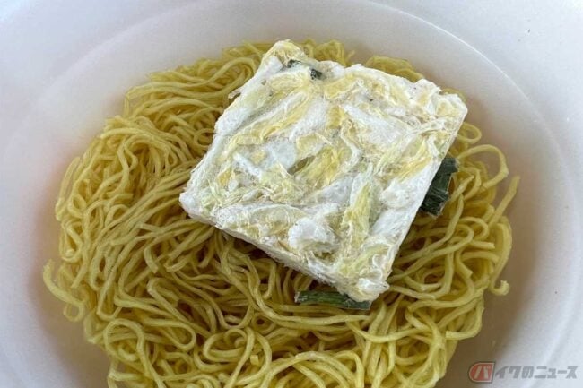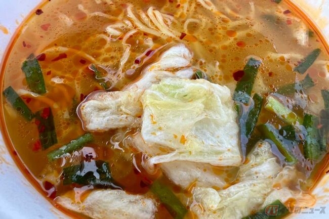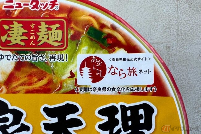 そして今回食したのは、2022年1月に発売された『ニュータッチ』の凄麺ご当地シリーズ「奈良天理ラーメン」です。最大の特徴はパッケージでも強調されている白菜のボリュームで、「デカギリ白菜入り」と書かれているそれは、フリーズドライ製法によりシャキシャキ食感を実現、これがじつに良い仕事をしており、奈良天理ラーメンらしさを表現しています。豆板醤やニンニクを効かせたピリ辛醤油味のスープにマッチしています。麺は細麺のノンフライタイプ、喉越しも抜群です。