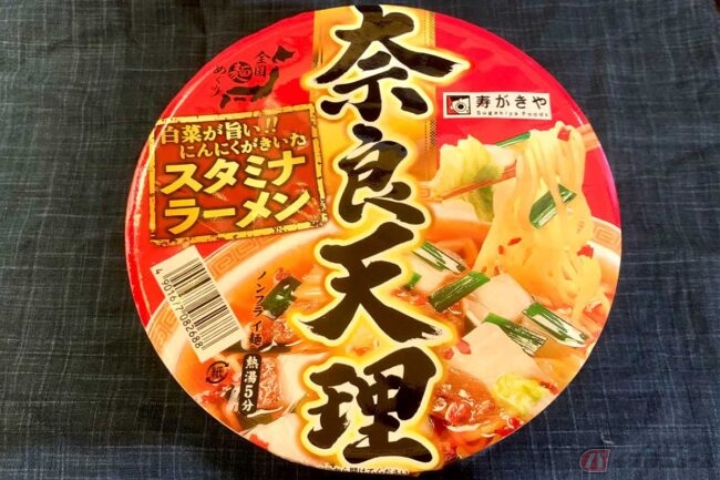 そんなスタミナラーメンはこれまでもご当地カップ麺として発売され、『寿がきや』の「全国麺めぐり 奈良天理ラーメン」もそのひとつです。