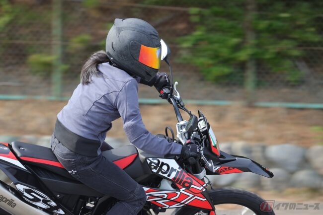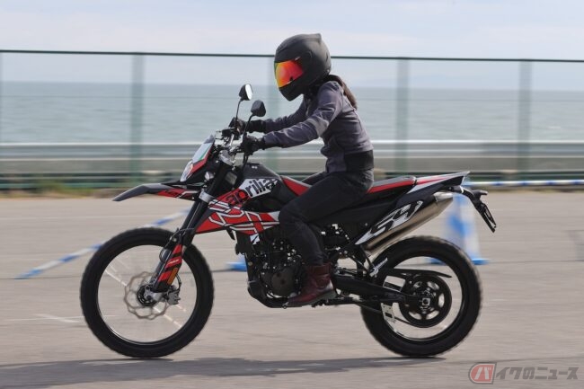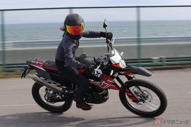 『小野木里奈の○○○○○日和』は、アプリリアの原付二種オフロードバイク「RX125」に試乗します。果たしてシート高905mmのバイクに乗ることができるのか!?
