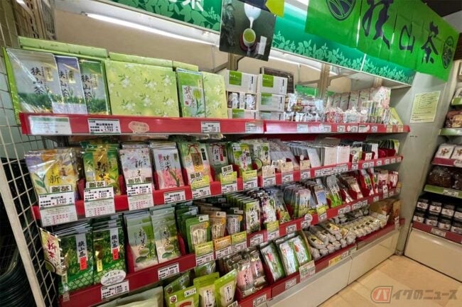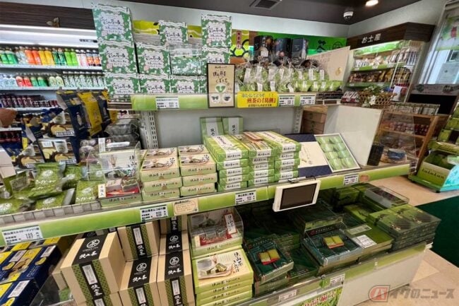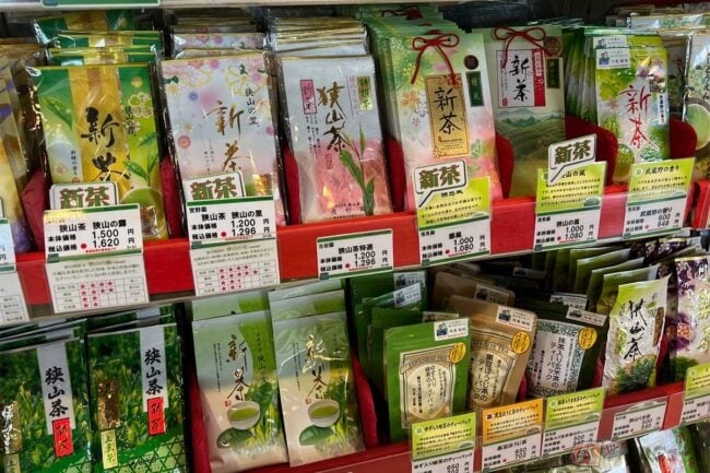 狭山と言えばお茶の名産地ということで、そばメニューは「狭山煎茶そば」に変更することもできるようです。また、ショッピングコーナーではものすごい種類と数の新茶や、お茶をベースとしたお菓子類が並べられ壮観でした。日本茶が好きならぜひ店内もチェックしてみてください。