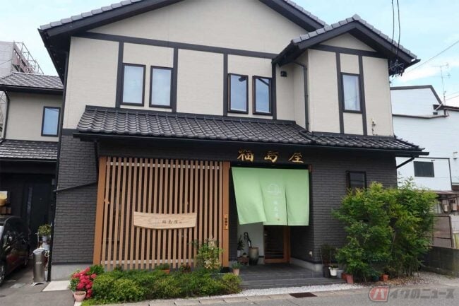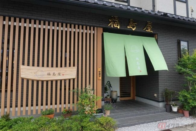 5分もかからずに目的のお店「福島屋」に到着。店の外観は定食屋ではなく綺麗な日本料理店といった雰囲気です。お店の裏の駐車場にバイクを停めて中に入ります。