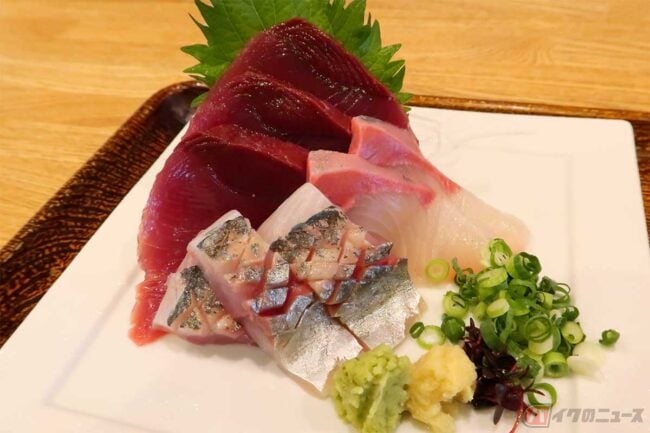 箸をお造りに移し、筆者が刺身の中で一番好きなカンパチからいただきます。これまた新鮮で過去に食べた中でも上位に入るカンパチです。カツオもアジも新鮮でもっと食べたくなる美味しさでした。