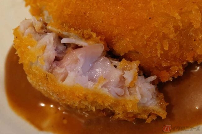 まずはアジフライを何もつけずに一口いただきます。サクッとした衣の食感の後にフワッ……と言うか、レアな歯応えがやってきました。この揚げ具合は、かなり絶妙です。下味はあまり感じませんが、新鮮で臭みが無く、そのままでも美味しいアジフライです。続けて胡麻ソースでいただきます。胡麻のコクとアジフライがベストマッチです。
