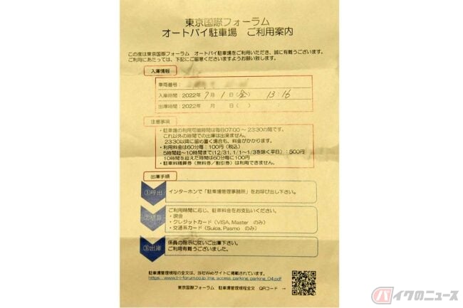 2022年から都の施設へのバイク受け入れを小池百合子都知事が表明し、東京国際フォーラムは最初の事例となります。実施までの限られた時間も影響してか、いまのところバイク駐車のすべてがアナログです。