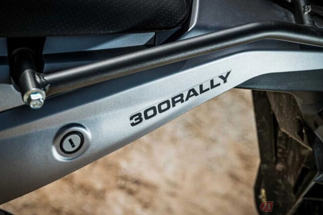 高強度スチール製フレームを採用するValico 300 Rallyでは、最大205mmトラベル量の倒立フロントフォークと、プリロード調整可能なシングルリアモノショックを採用。