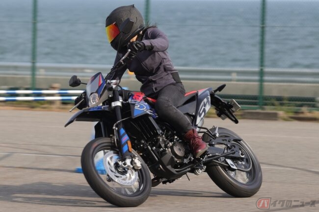 車体は134kgと軽量なので、取り回しや走り出したら軽快さを感じますし、車体もスリムなのでニーグリップもしやすいバイクです。正直、走行していると足つきの悪さを忘れてしまうほど運転姿勢には問題がありません。実際にこのバイクでオフロードを走ってみたいですね。