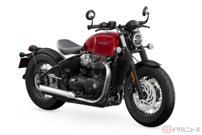 トライアンフのオリジナルカスタムアイコンであるBonneville Bobberは、クラシックなJet Black、洗練されたMatt Storm Grey/Matt Ironstone、新しいRed Hopperオプションの3色を用意。オプションには、Red Hopperの燃料タンク、Jet Blackのサイドパネルとマッドガードが含まれています。価格は184万4000円から。