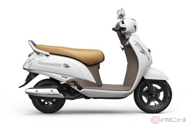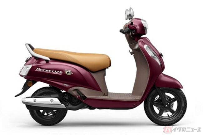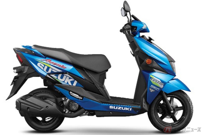 アドレスよりもわずかに長く、広く、背を高くすることでアグレッシブなフォルムとされたほか、LEDヘッドライトとテールライト、ツートンカラーのグラフィックなど、高い存在感を放つ一台に仕上げられています。