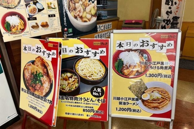 ほかにも「川越小江戸黒豚のとろける角煮丼」や「川越小江戸黒豚醤油ラーメン」など、とにかく豚肉攻めでタジタジです……。しかしどれも1000円超えで、SAやPA飯としては高級品です。
