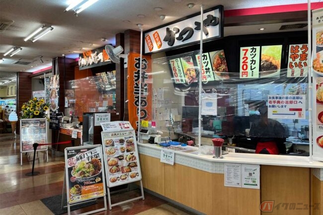 建物内を覗いてみると、とんかつ専門店「かつや」やラーメン専門店「らあめん花月嵐」などの大手チェーン店もあります。どちらも好物なので少し心が揺らぎましたが、「秩父名物豚の味噌漬丼」の看板が目につきました。「●●名物」といった表現に弱いうえに、そのメニュー名から想像しただけでヨダレが出そうです。