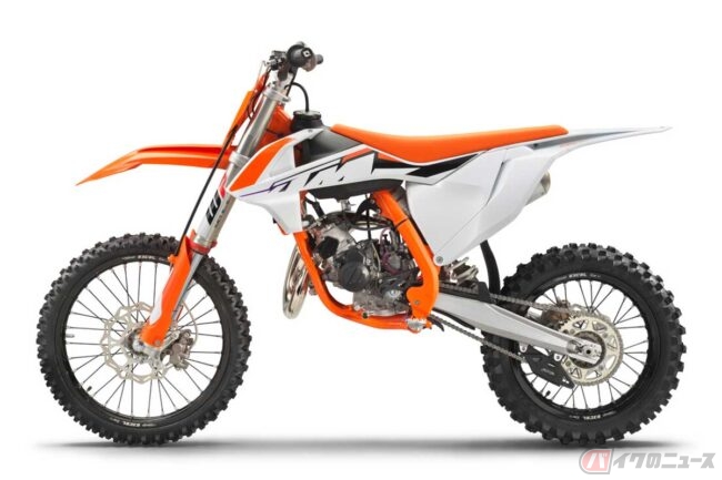 また、機種により新たに2速から5速へのシームレスなシフトアップを可能にするクイックシフターを搭載し、エルゴノミクスの見直しや、フルサイズの2ストロークモデルはすべてセルスターターを装備するなど多くの仕様変更がなされており、前後サスペンションにはいずれもWP製を採用しています。