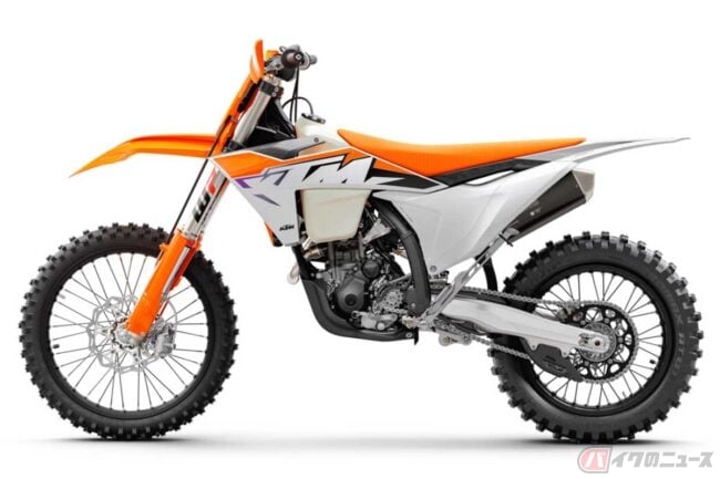 国内導入が発表された、2023年型のモトクロスモデル「SX」シリーズとクロスカントリーモデル「XC」シリーズの価格(消費税10%込み)や主要諸元は次の通り。いずれも競技専用車輌です。