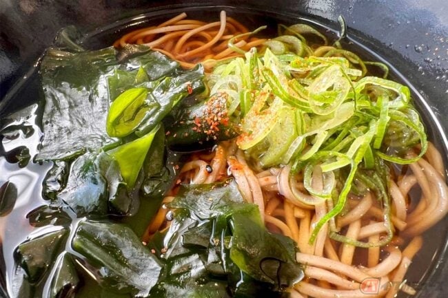 施設全体が和風(トイレも!)で演出され、フードコートのメニューにも、やはり和食が充実しています。なかでも温かいそばは至ってシンプルなメニューですが、出汁の味わいや麺の喉越しなどは「おっ、ここは美味しいな」と思わせてくれます。