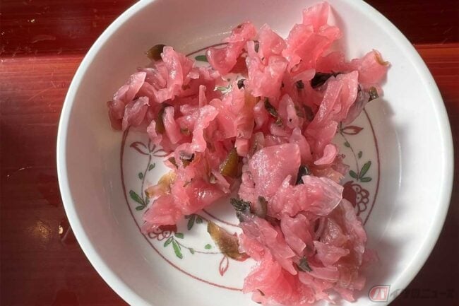 まずはそば、やはり味の良さを感じます。シンプルにネギとワカメがのっています。セットのご飯は大盛り、玉子は半熟玉子にしました(生卵かどちらかを選びます)。この玉子だけでも十分ご飯のおかずになるのですが、小皿で添えられた漬物がまた美味い! 今回もまた十分満足できる食事となりました。