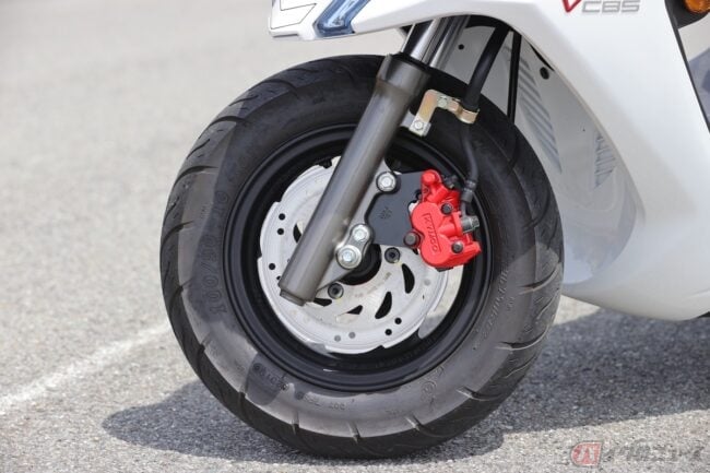 ブレーキングの具合は、ゆっくり利き始めるタイプで車体にも書いてある通り(C)コンビネーション(B)ブレーキ(S)システムを採用しているの。