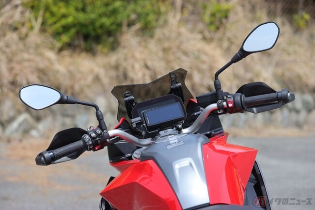 しかも、ライディング姿勢がかなり楽。アドベンチャー要素が強いスタイリングも相まって、ストンと楽に座ったままの自然体で乗ることができるので、長距離移動も疲労感を感じにくいと思います。