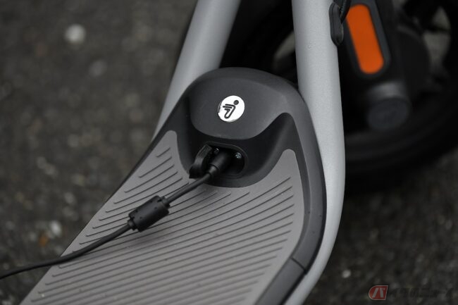ただ、小旋回などのシーンではバイクのように扱うことが難しい印象です。小回りが効きづらいので、どうしても一旦片足を地面に着いて、車両の方向を一度向き直さないとコーナリングはやりずらいと感じてしまいました。また、乗っている間、スリムな車体のデザインだからこそ、ステップがちょっと窮屈で、両足を横並びに乗るよりも体を半身にして両足はステップの上で前後にする状態の方が、私は乗りやすかったです。