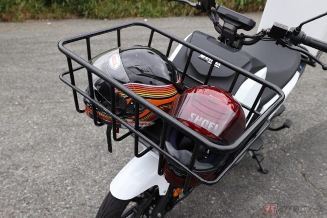 また、日常の相棒として考えれば、リヤシート下の収納スペースがない、または少ないという電動スクーターのデメリットを、フロントバスケットまたはリヤボックスのどちらかだけでも十分にカバーできそうです。