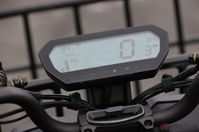 もちろん、カーブに入っていくときにも不安がありません。まるで250cc以上のスクーターを走らせているような感覚です。電動バイクを走らせると、そのトルク特性からアクセルを開けたとき荷重をかけにくい感覚があるのですが……もちろん、筆者の走らせ方がまだ、内燃機関のバイクと同じであるということもあるでしょう、電動バイクの走らせ方はおそらく少し異なるのではないかと思っています。